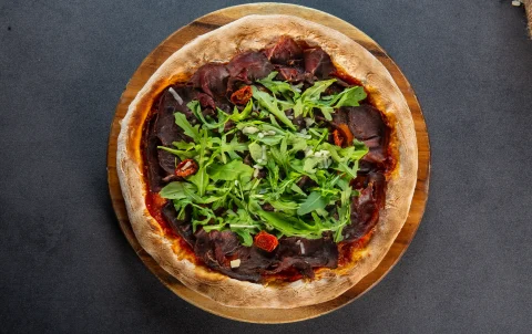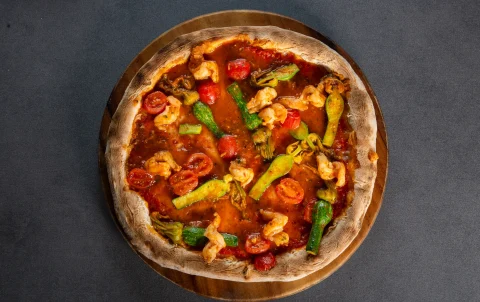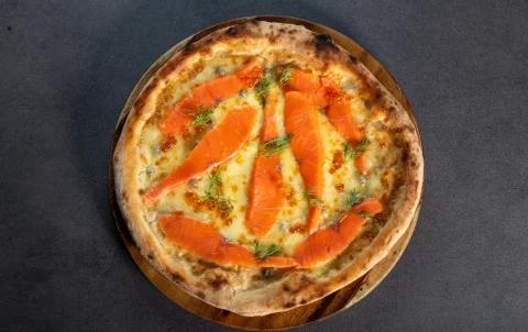 Pizza Salmone Affumicata highlights the natural elegance of smoked salmon on a perfectly baked Italian crust. Tender...